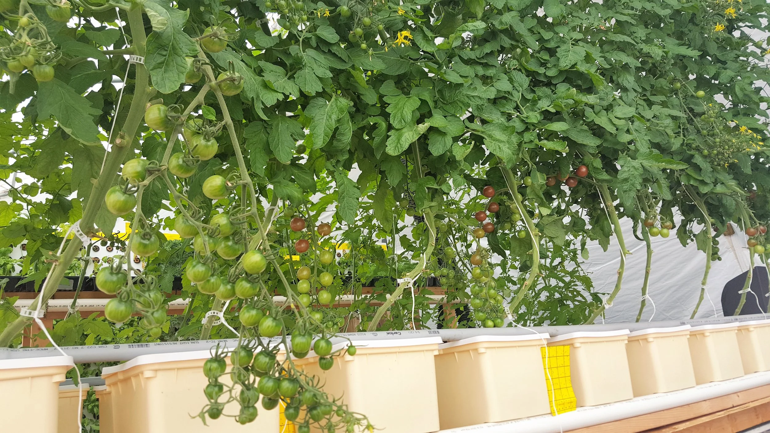 We started exploring growing an heirloom variety of cherry tomatoes. We grew them using an interconnected system of dutch buckets, which seems to be going really well. We caught them growing several inches a day. you can literally watch these things grow overnight.